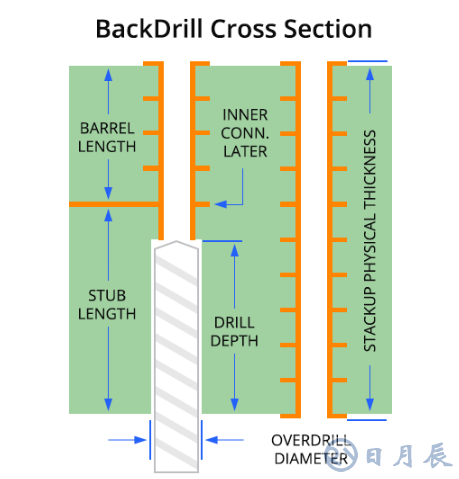 背鉆技術(shù),可控深度鉆孔(CDD),也稱為背鉆孔。它可以將未使用的銅質(zhì)筒體或分叉短線從印刷電路板通孔中去除。當高速信號在PCB板層之間傳輸時穿過了一個銅質(zhì)筒體,就會產(chǎn)生失真。如果信號層中存在分叉短線,并且該短線較長,失真將會成為嚴重的問題。