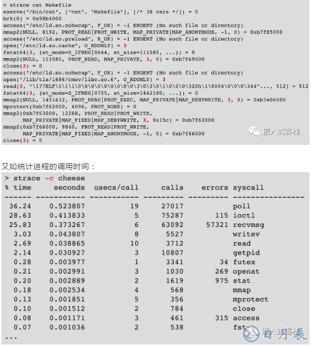 2.strace -p 《pid》(跟蹤現(xiàn)有進(jìn)程)strace -c 《command》(統(tǒng)計(jì)進(jìn)程的系統(tǒng)開(kāi)銷(xiāo)時(shí)間)