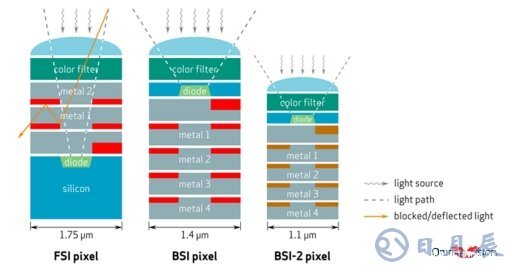 除了BSI,這個行業(yè)還需要其他的改變。在像素縮放中,光二極管(關鍵的光捕獲元件)在圖像傳感器中收縮,使其效率降低。二極管靠得更近,產生了串擾。