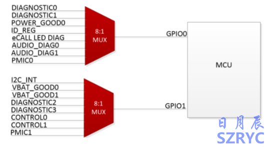 圖1:具有8:1多路復(fù)用器的通用輸入/輸出(GPIO)擴展功能
