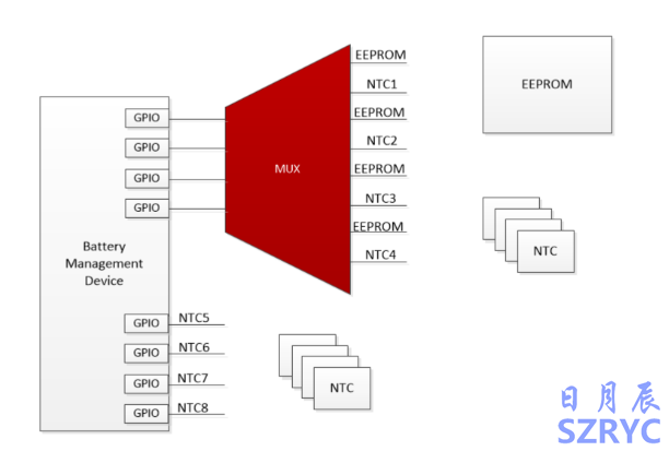 圖3:EEPROM與NTC之間的電池管理電路復(fù)用