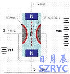 2、MOS管的工作原理:圖1-3是N溝道MOS管工作原理圖;