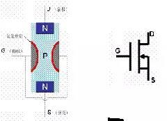 圖1-4-A 是N溝道MOS管的符號,圖中D是漏極,S是源極,G是柵極,中間的箭頭表示襯底,如果箭頭向里表示是N溝道的MOS管,箭頭向外表示是P溝道的MOS管。