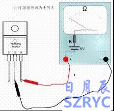 把紅表筆接到MOS管的源極S;把黑表筆接到MOS管的漏極D,此時表針指示應該為無窮大,如圖5-3所示。如果有歐姆指數(shù),說明被測管有漏電現(xiàn)象,此管不能用。