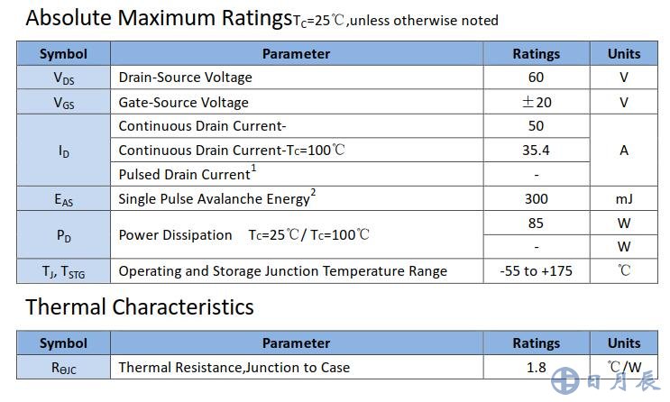 電壓:60V,電流:50A,Vgs:10V,Rds:0.02Ω |