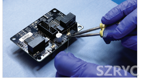 在實例中,電路板組裝后在VGS 測試點中添加了一個方針頭部。測試點使用非導電的熱熔膠加強,以增加強度。