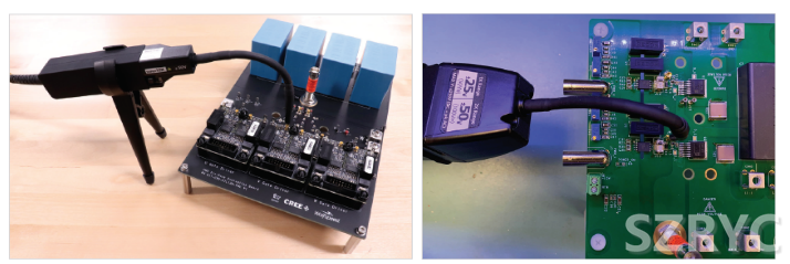 在理想情況下,測試點會提前規(guī)劃,并整合到柵極驅動器或評測電路板中,如Wolfspeed KIT-CRDCIL12N-FMC Wolfpack 評測套件。在這種場景下,MMCX 連接器會提供最好的性能,如果關心的信號落在300Vpk 電壓額定值范圍內,推薦使用MMCX連接器。