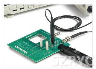 在時延校正前,必要時要自動清零和校準探頭,消除任何偏置或定標誤差。通過使用對稱連接把兩只探頭連接到一臺函數發(fā)生器上,可以校正電壓探頭VDS 和VGS 的時延。使用函數發(fā)生器生成的方波,檢查信號的振鈴和下降沿是否對齊??梢允褂脠D7 所示的電路板,簡便地連接函數發(fā)生器和任何電壓探頭。函數發(fā)生器信號連接到電路板中心,電路板邊緣周圍為示波器探頭連接提供了各種選項,可以適應各種探頭接口。