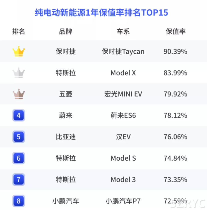 在純電動(dòng)車領(lǐng)域,除了特斯拉Model X,報(bào)告中另一款能夠?qū)?年車齡保值率維持在60%以上水平的是比亞迪元新能源,該車3年車齡保值率為60.4%,這款小型SUV這樣的保值水平已經(jīng)接近小型SUV汽車前十名的保值水平,第十名榮威RX3的3年車齡保值率為62.4%。