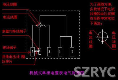 單相有功電度表(簡(jiǎn)稱:?jiǎn)蜗嚯姸缺恚┯山泳€端子、電流線圈、電壓線圈、計(jì)量轉(zhuǎn)盤、計(jì)數(shù)器構(gòu)成,只要電流線圈通過電流,同時(shí)電壓線圈加有電壓,轉(zhuǎn)盤就受到電磁力而轉(zhuǎn)動(dòng)……單相電度表共有5個(gè)接線端子,其中有兩個(gè)端子在表的內(nèi)部用連片短接,所以,單相電度表的外接端子只有4個(gè),即1、2、3、4號(hào)端子。由于電度表的型號(hào)不同,各類型的電表在鉛封蓋內(nèi)都有4各端子的接線圖。