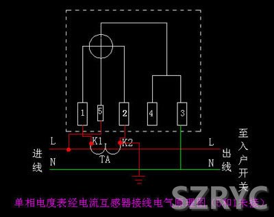 接法有兩種: (1)單相電度表內(nèi)5和1端未斷開時(shí)的接法。 由于表內(nèi)短接片沒有斷開,所以互感器的K2端子禁止接地。