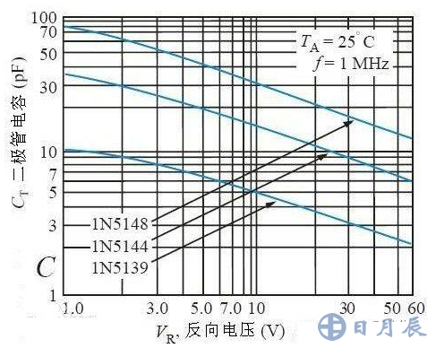 由于結(jié)電容的存在,當頻率高到某一程度時,容抗小到使 PN 結(jié)短路。導(dǎo)致二極管失去單向?qū)щ娦?,不能工作,PN 結(jié)面積越大,結(jié)電容也越大,越不能在高頻情況下工作。