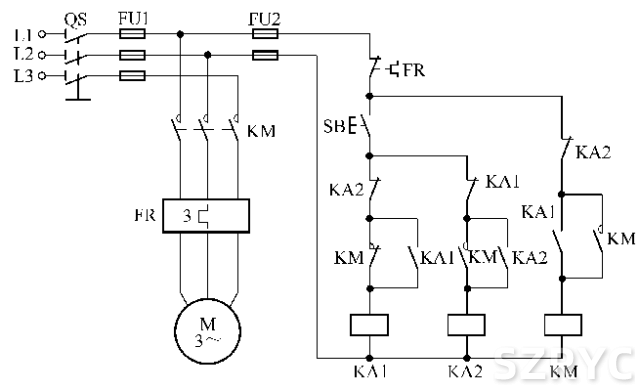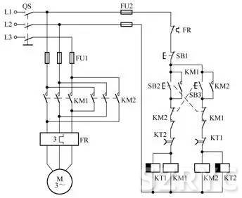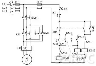 防止正反轉(zhuǎn)轉(zhuǎn)換期間相間短接的三接觸器控制電路