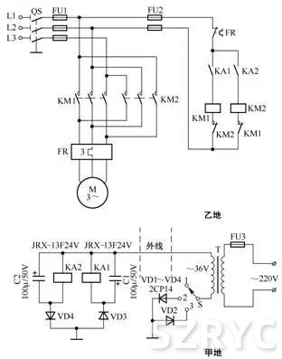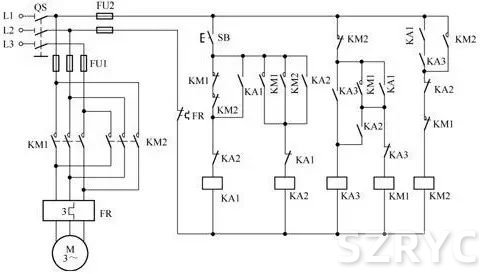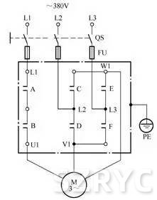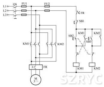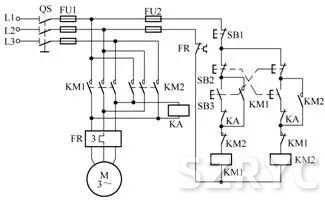 用連鎖繼電器防止正反轉(zhuǎn)轉(zhuǎn)換相間短接的控制電路