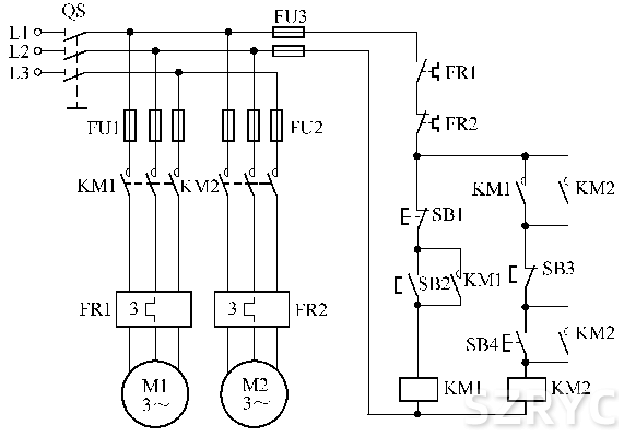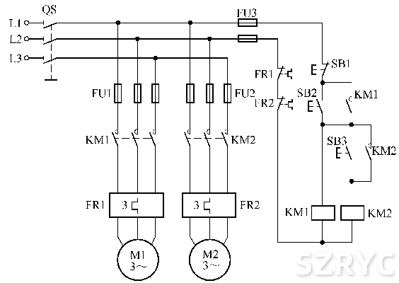 兩條運(yùn)輸原料傳送帶的電氣控制電路
