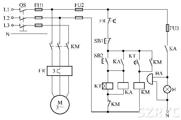 帶有報(bào)警裝置的電動(dòng)機(jī)短暫停電來(lái)電后自動(dòng)再起動(dòng)電路