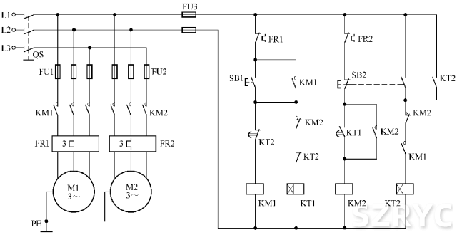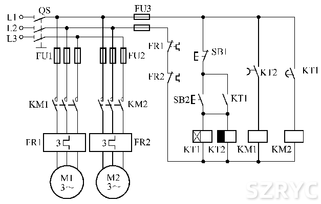 兩臺(tái)電動(dòng)機(jī)按順序起動(dòng)同時(shí)停止的控制電路