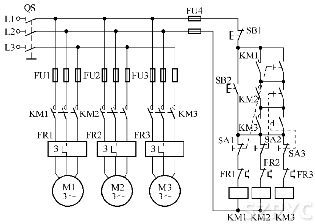 多臺(tái)電動(dòng)機(jī)可同時(shí)起動(dòng)又可有選擇起動(dòng)的控制電路