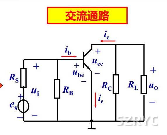 (2)交流通路:將放大電路中的電容視為短路,電感視為開路,直流電源視為短路即得。它又被稱為動態(tài)分析。
