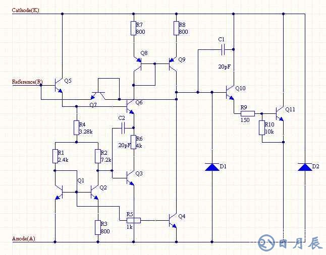 上面介紹了并聯(lián)式電壓基準芯片TL431的使用,這里為了加深對這個器件的理解,特制作了TL431的內部接線圖的schdoc,用來在protel dxp中仿真。