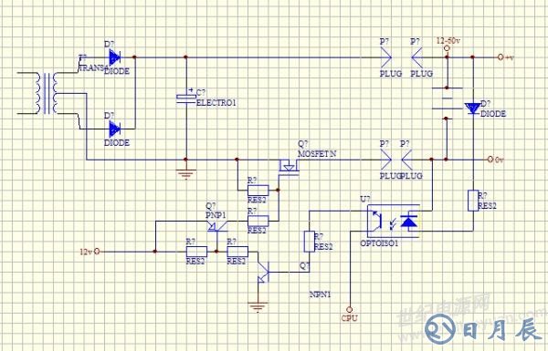 這個電路的原理很簡單,剛開始電源上電的時候MOS管由于沒有觸發(fā)電壓壓不導通,如果輸出端接上電池, 如果電池的極性是正確的,經(jīng)電阻分呀三極管導通觸發(fā)MOS導通