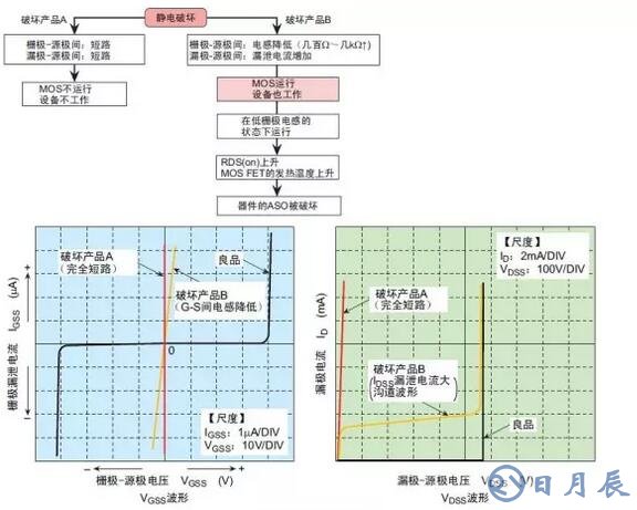 主要有因在柵極和源極之間如果存在電壓浪涌和靜電而引起的破壞,即柵極過(guò)電壓破壞和由上電狀態(tài)中靜電在GS兩端(包括安裝和和測(cè)定設(shè)備的帶電)而導(dǎo)致的柵極破壞