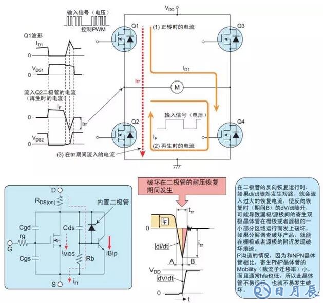在DS端間構(gòu)成的寄生二極管運(yùn)行時(shí),由于在Flyback時(shí)功率MOSFET的寄生雙極晶體管運(yùn)行,導(dǎo)致此二極管破壞的模式。