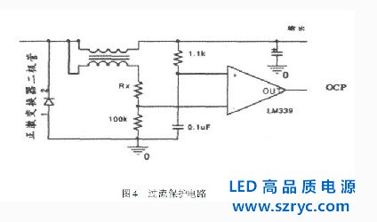 當(dāng)出現(xiàn)負(fù)載短路、過載或者控制電路失效等意外情況時,會引起流過開關(guān)管的電流過大,使管子功耗增大、發(fā)熱,若沒有過流保護(hù)裝置,大功率開關(guān)管就可能損壞; 調(diào)節(jié)電路失效還可能導(dǎo)致LED過流損壞。 過流保護(hù)一般通過取樣電阻或霍爾傳感器等來檢測、比較,從而實現(xiàn)保護(hù),但它們都有體積大和成本高的缺點。