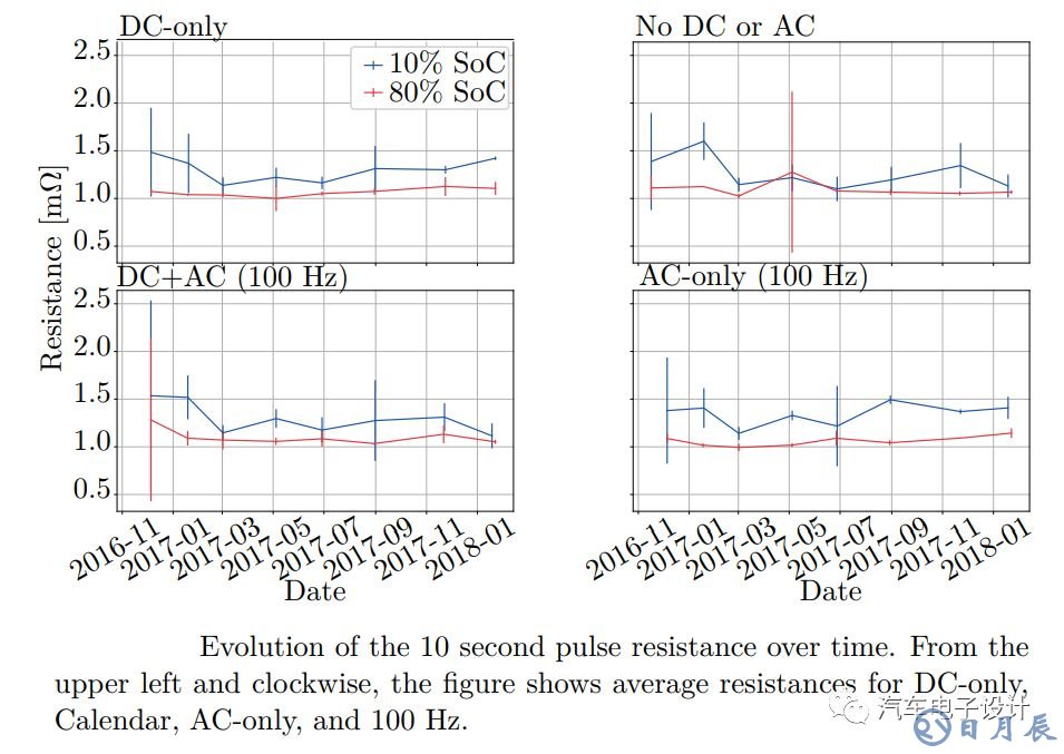 Sven De Breucker在《Impact of Current Ripple on Li-ion Battery Ageing 》一文中,做了一些實(shí)驗(yàn)和測試。這個(gè)實(shí)驗(yàn)是基于4個(gè)月的短期實(shí)驗(yàn)來做的
