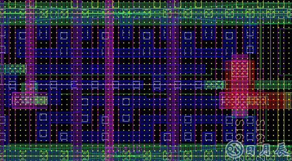 這塊晶圓上的小方塊就是芯片。芯片放大了看就是成堆成堆的電路,這些電路并不比那臺(tái)30噸計(jì)算機(jī)的電路高明,最底層都是簡(jiǎn)單的門(mén)電路。