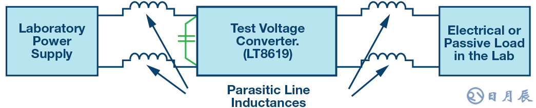 圖1是用于評估電源轉(zhuǎn)換器的設置原理圖。我們要測試的是電源電路的行為,而不是測試板與實驗室電源之間或與輸出端負載之間的連接線路的影響。為降低這些連接線路的影響,應采取兩項重要措施。