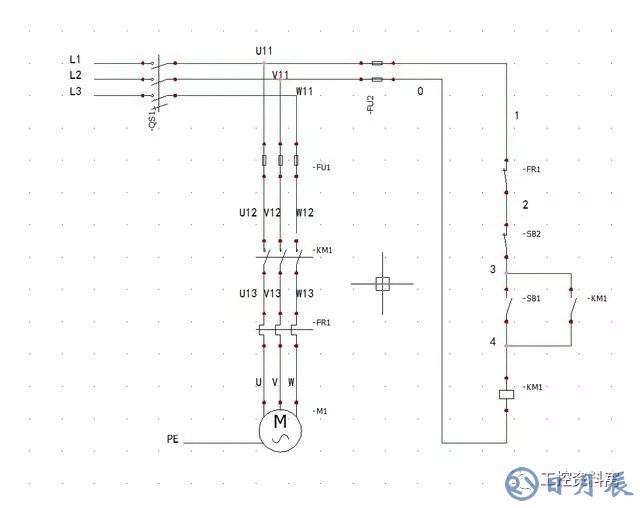 接下來我們看一下是怎么應(yīng)用的,先看一下一個帶有過載保護(hù)的接觸器自鎖控制的電路